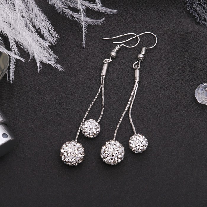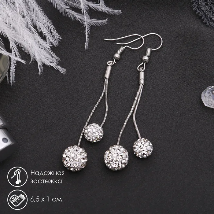 Серьги висячие со стразами «Шамбала», белые в серебре, 6.5 см — Характеристики