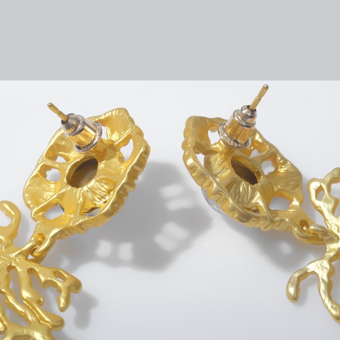 Серьги висячие со стразами «Цветение» сказочное, цветные в золоте, 7 см