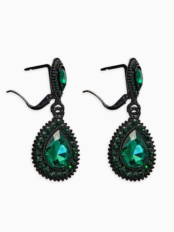 Покажите свою любовь к роскоши и элегантности с этими изумрудно-чёрными висячими серьгами. Богатая зелень искусственных стразов в окружении блестящей чёрной металлической рамки играет искрами при свете свечей, подчёркивая природную красоту обладательницы. Идеально подходят для торжественных случаев и свадебных церемоний, подчеркивая женственность и утончённость образа. Традиционная английская застёжка обеспечивает уверенную фиксацию изделия на ухе, гарантируя комфорт и безопасность в течение вечера.