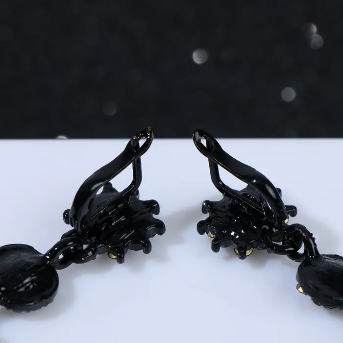 Серьги висячие со стразами «Вечерние» мадам, цвет изумрудный в чёрном металле, 7 см — Характеристики