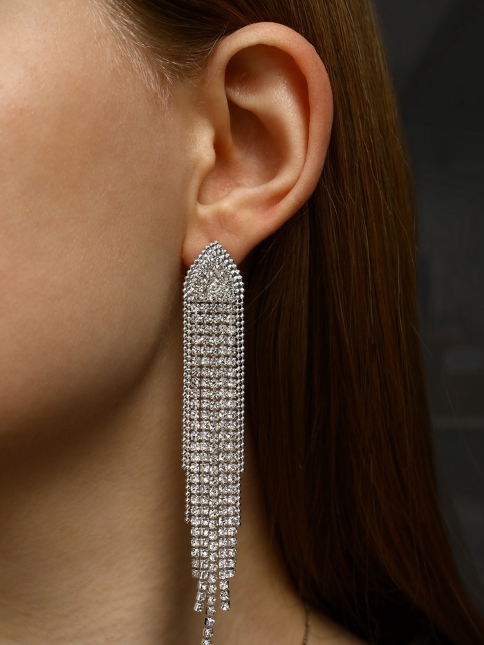Длина украшений составляет 10 см, что делает их идеальным выбором для вечерних выходов и торжественных мероприятий. Застёжка пусет обеспечивает надежную фиксацию на ухе, добавляя уверенности в их ношении на протяжении всего дня или ночи.