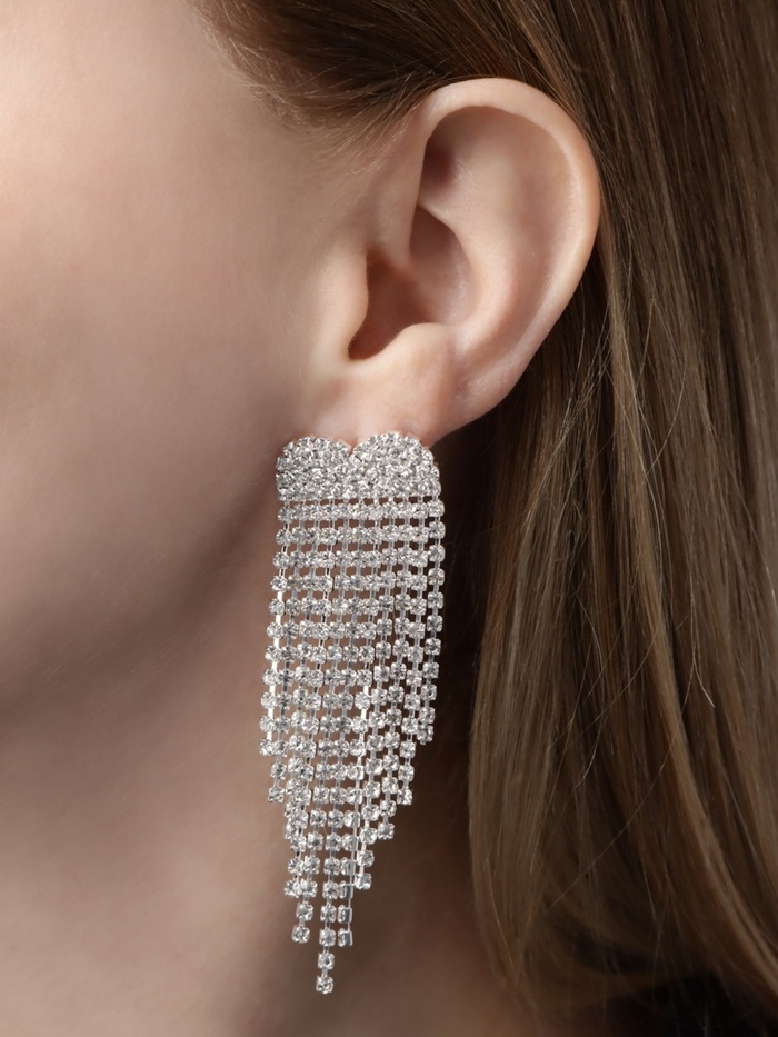 Серьги висячие со стразами «Вечное сияние» сердечки, белые в серебре — Характеристики