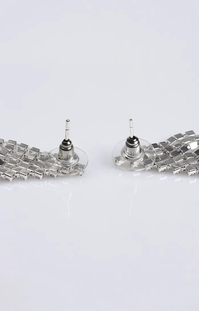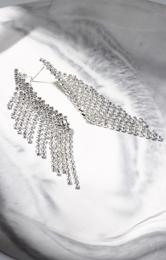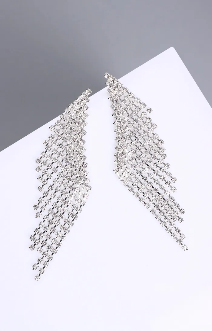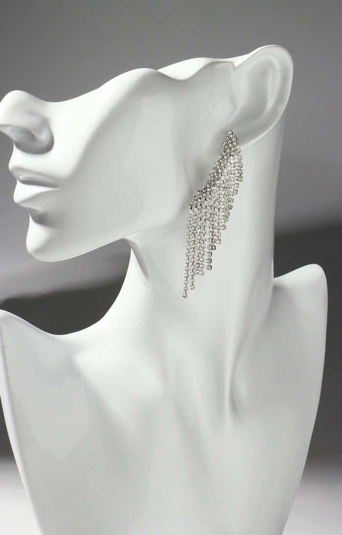 Серьги висячие со стразами «Вечное сияние» водопад, белые в серебре — Характеристики