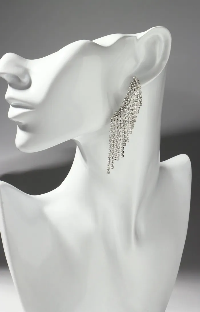 Погрузитесь в мир непревзойденного блеска с висячими серьгами, которые сразу же привлекают внимание своим восхитительным дизайном. Эти украшения, вдохновленные концепцией «вечного сияния», поражают своей утончённой элегантностью, декорированны белыми стразами на серебристом основании. Длина серьг в 8 см делает их идеальным выбором как для вечернего выхода, так и для повседневной носки.