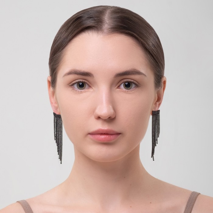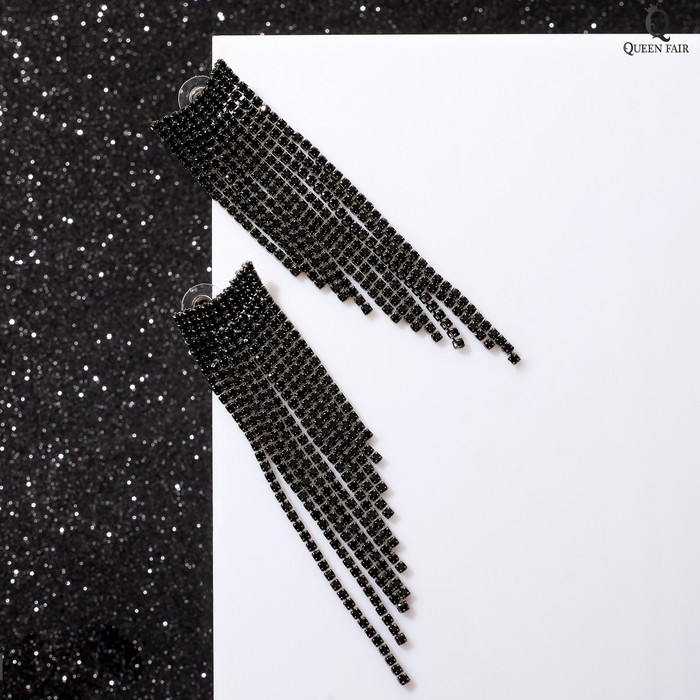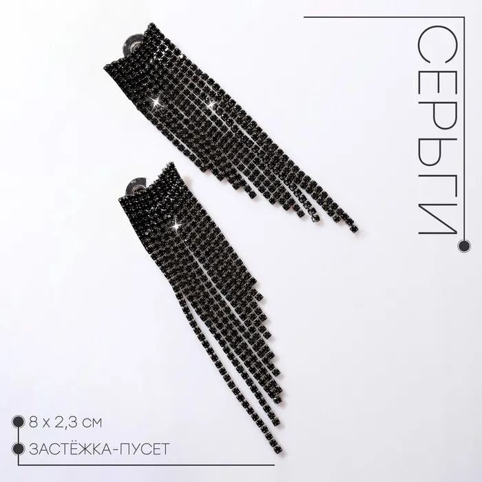 Серьги висячие со стразами «Водопад», 8 см, чёрные в серебре — Характеристики