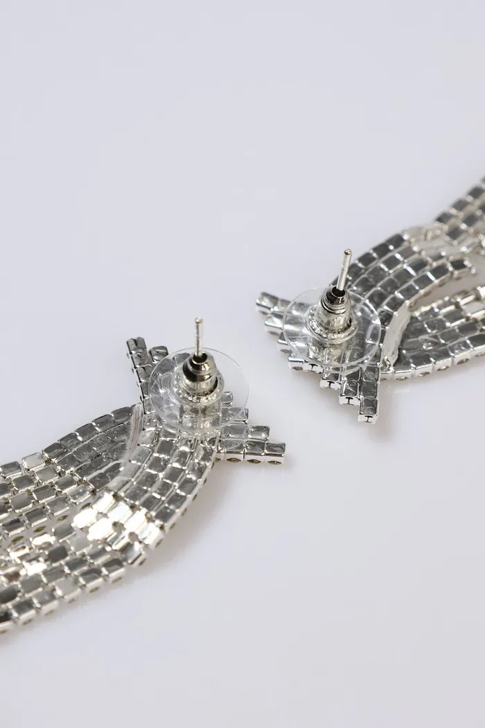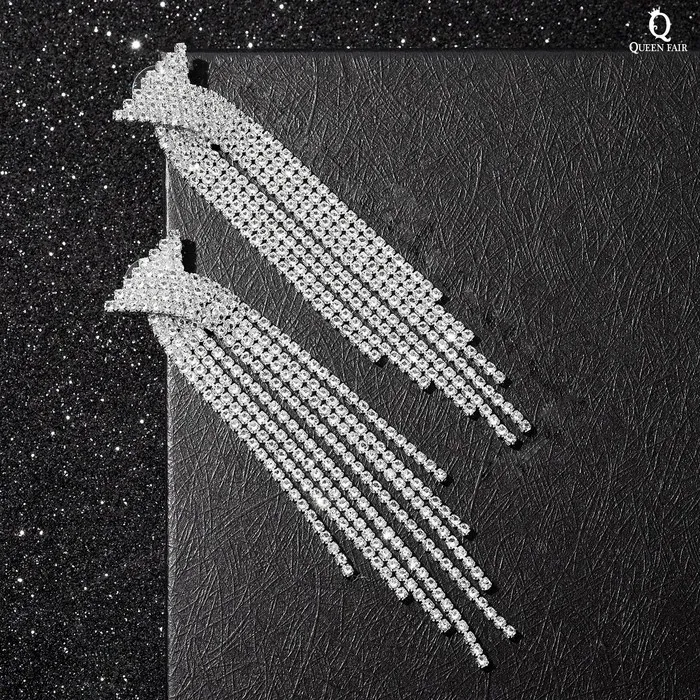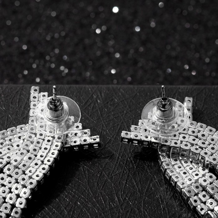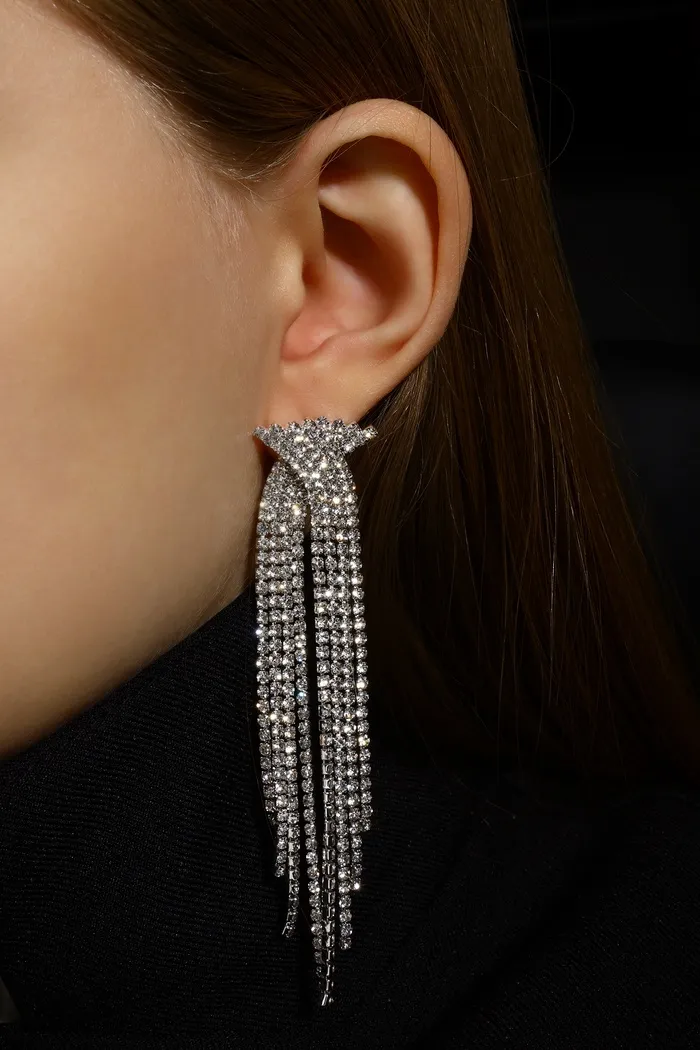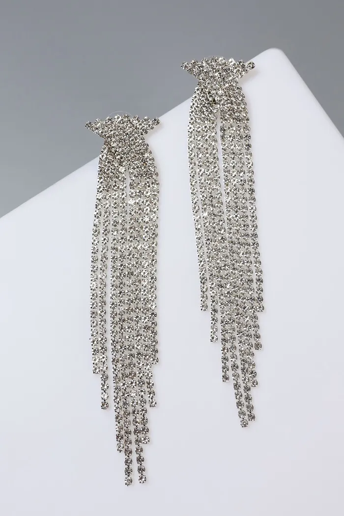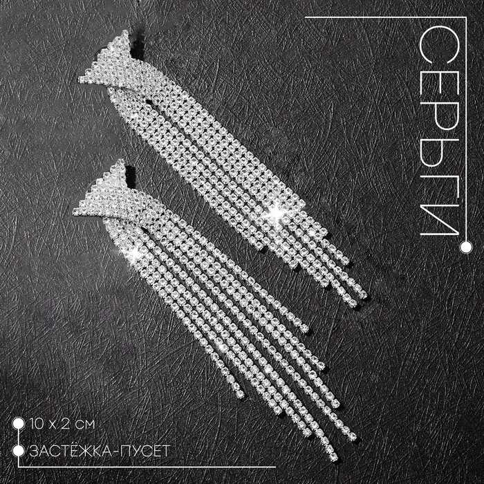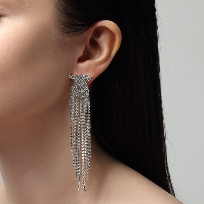 Серьги висячие со стразами «Водопад» бантик, белые в серебре,10 см — Характеристики