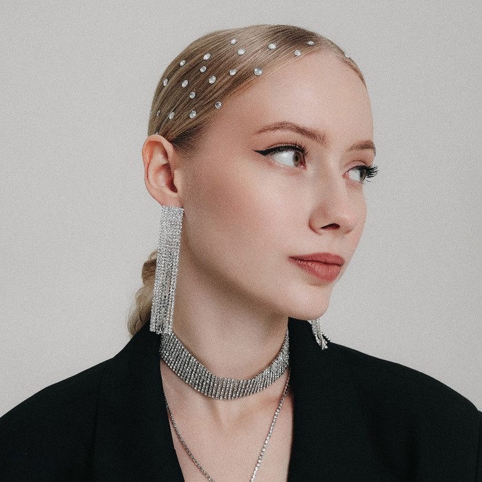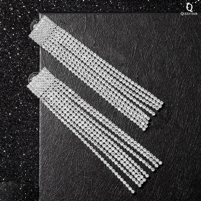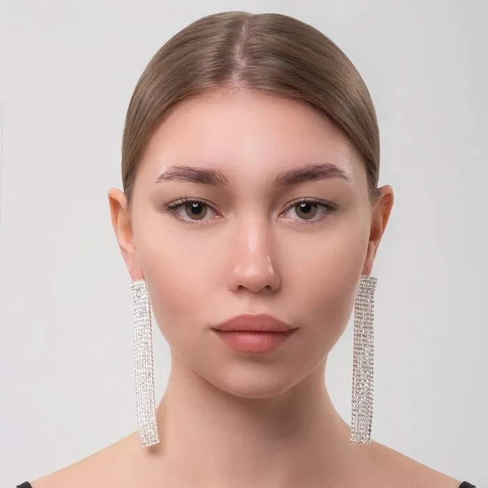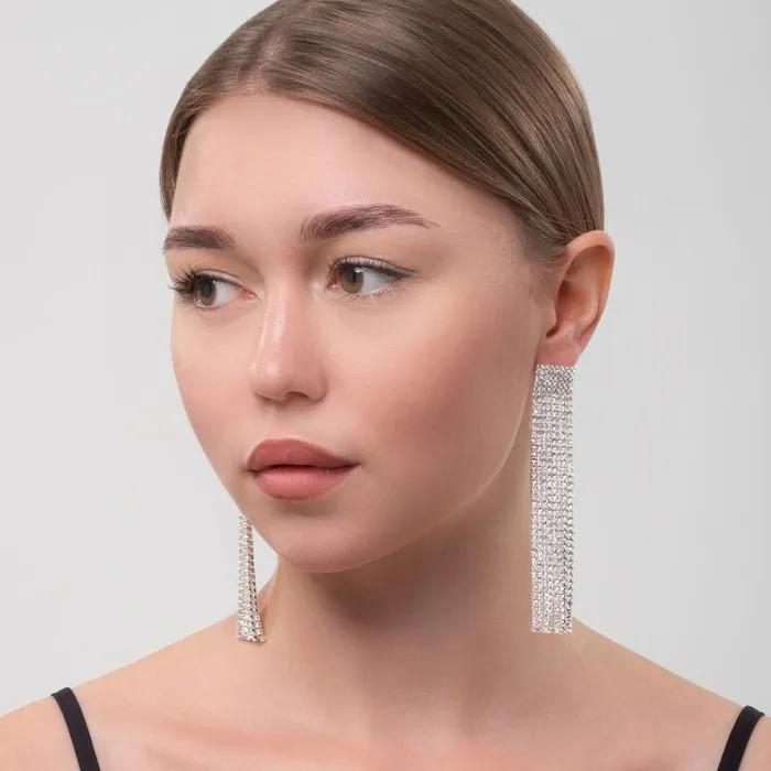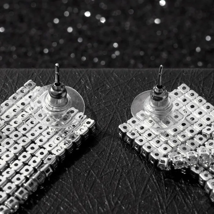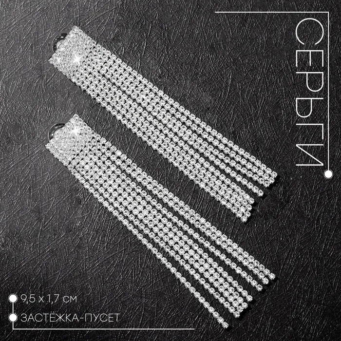 Серьги висячие со стразами «Водопад» квадрат, белые в серебре, 9.5 см — Характеристики