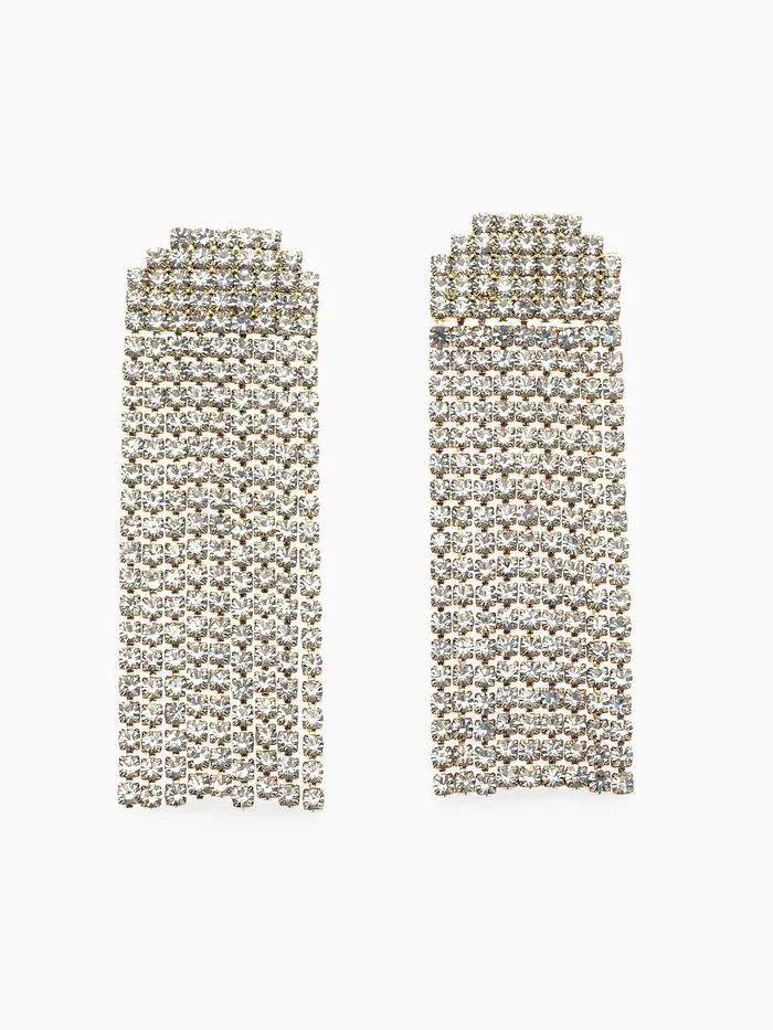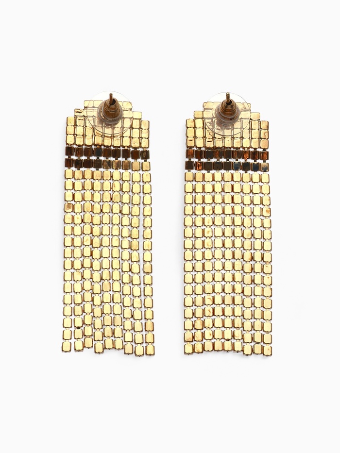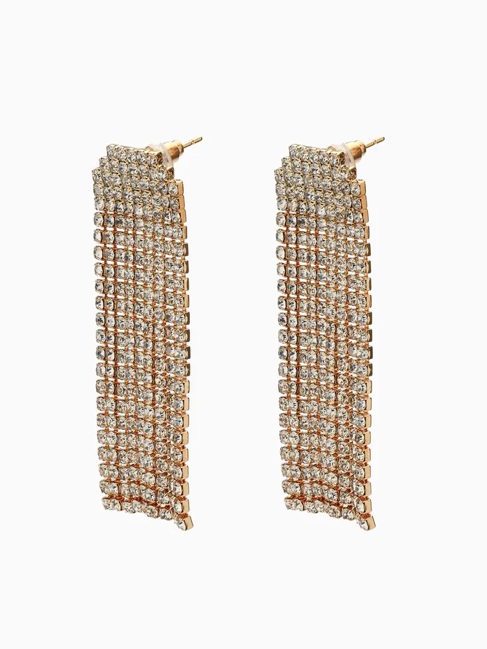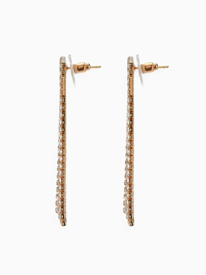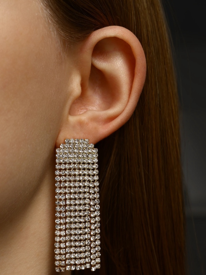 Серьги висячие со стразами «Водопад» мягкий квадрат, белые в золоте — Характеристики