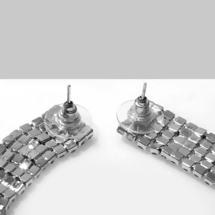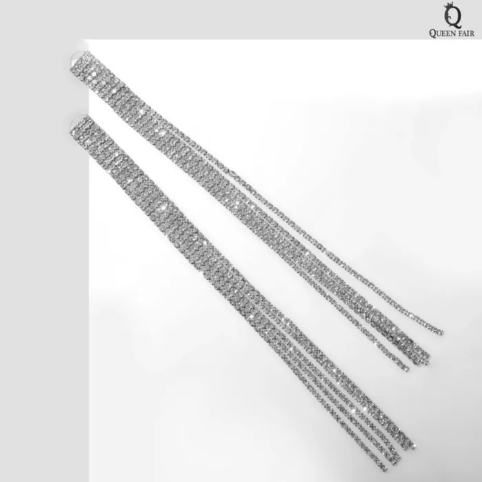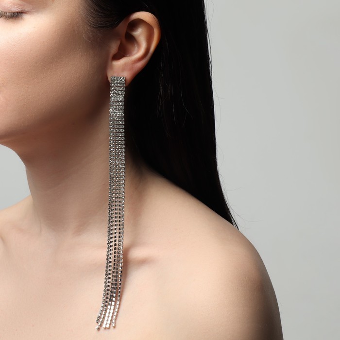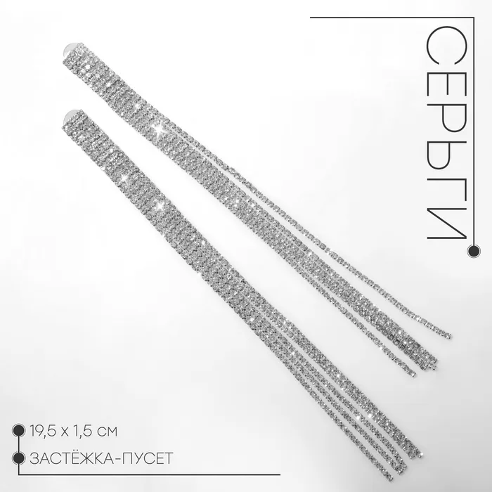 Серьги висячие со стразами «Водопад» мини квадрат, 5 нитей, белые в серебре, 19.5 см — Характеристики