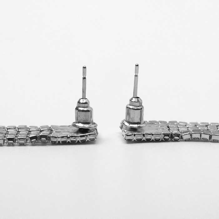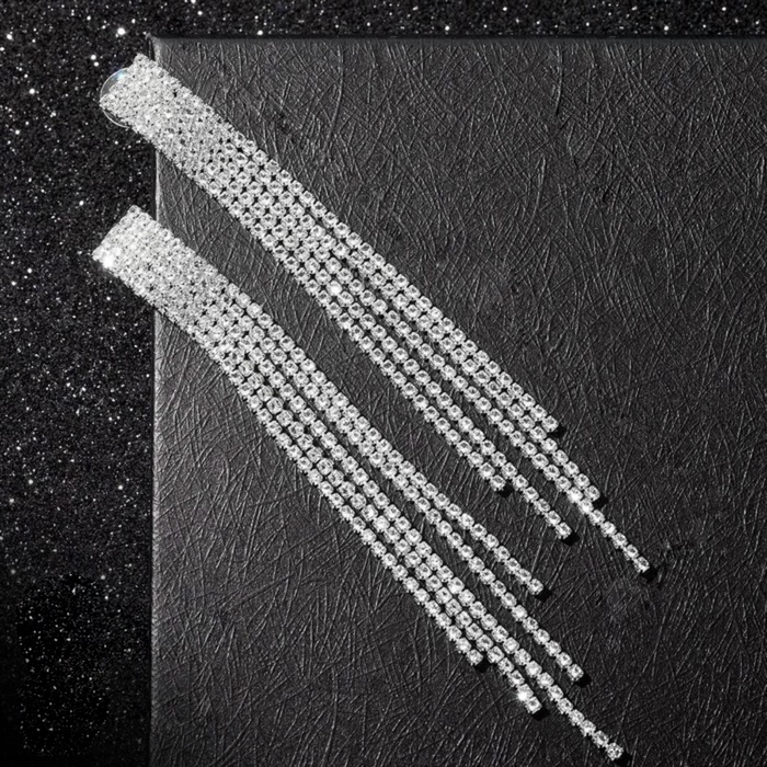 Серьги висячие со стразами «Водопад» на прямоугольнике, белые в серебре, 9 см — Характеристики