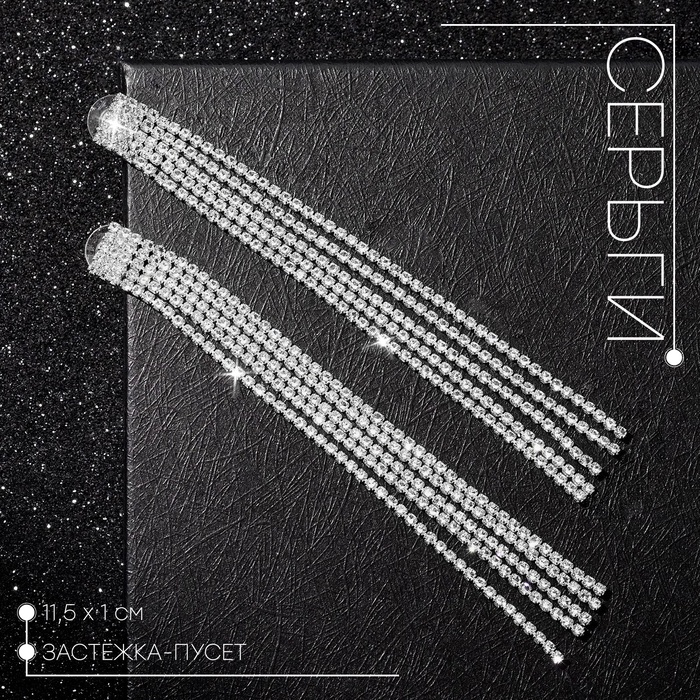 Серьги висячие со стразами «Водопад» прямые нити, цвет белый в серебре, 11,5 см — Характеристики