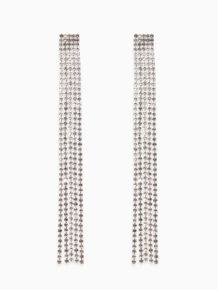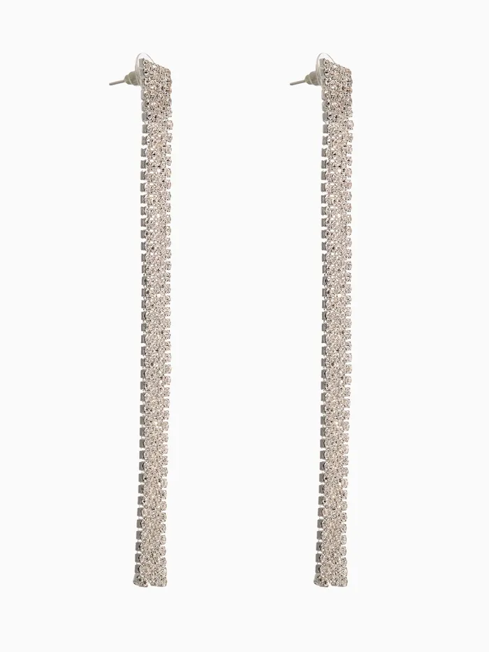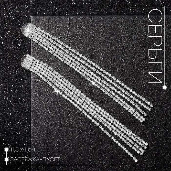 Серьги висячие со стразами «Водопад» прямые нити, цвет белый в серебре, 11,5 см — Характеристики