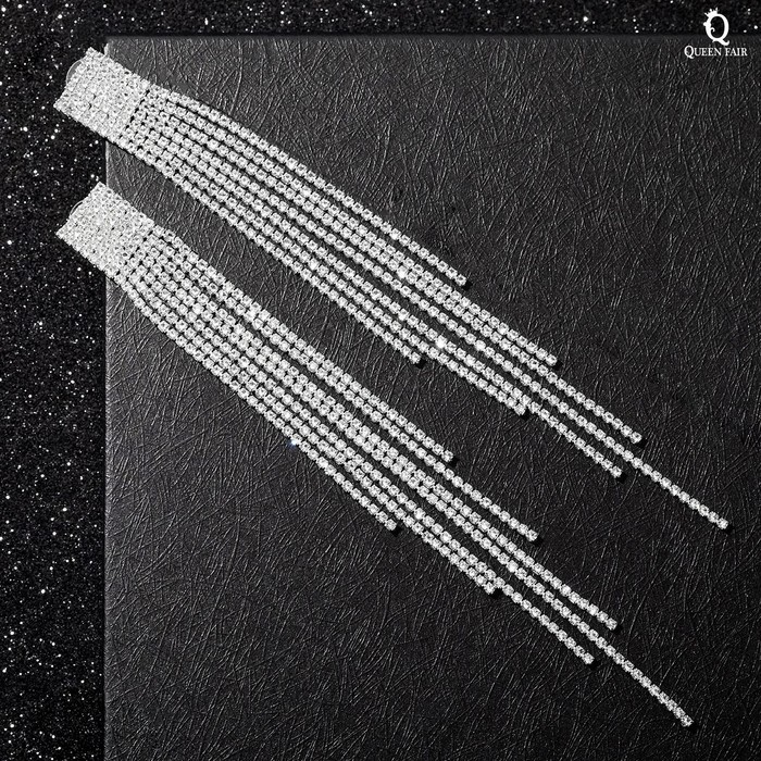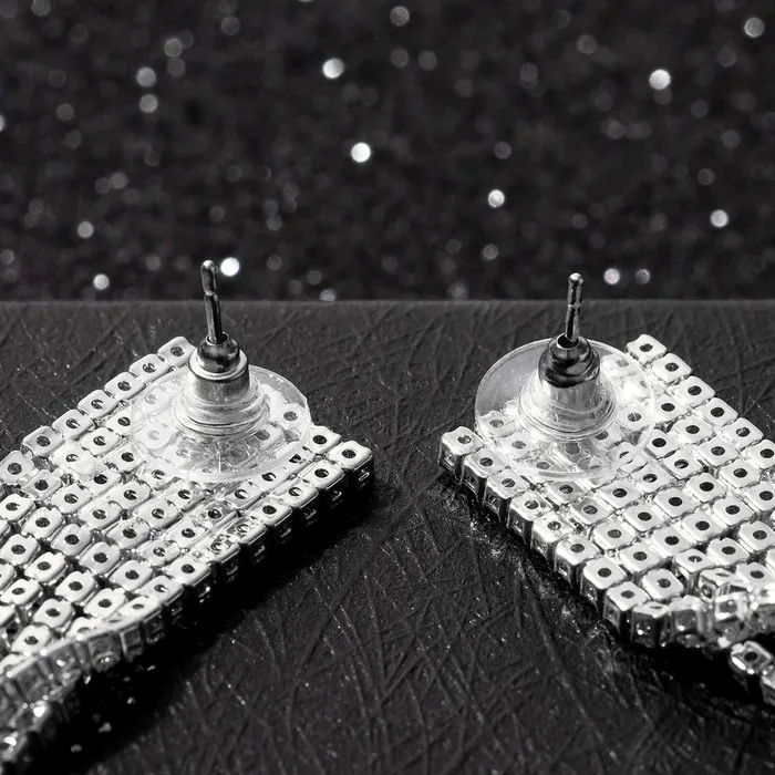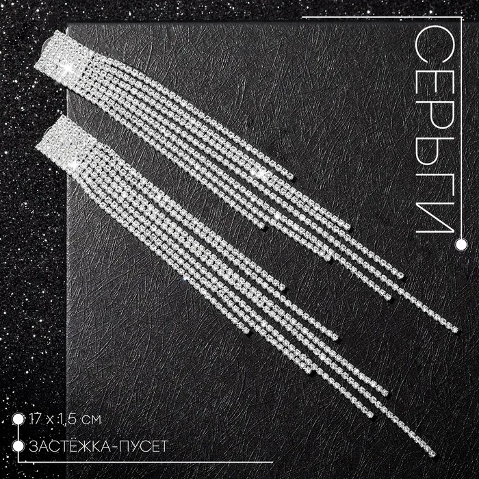 Серьги висячие со стразами «Водопад» ступенчатые, белые в серебре, 17 см — Характеристики