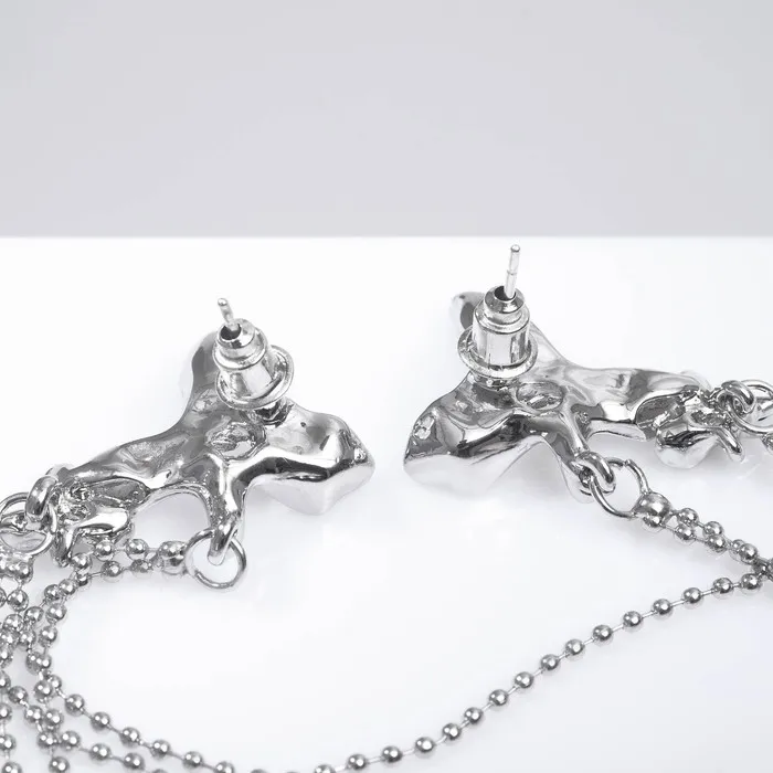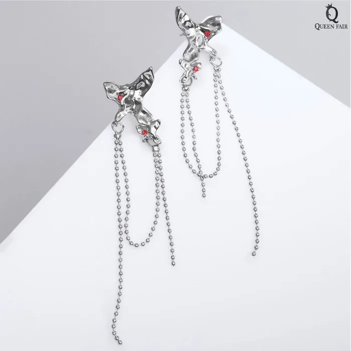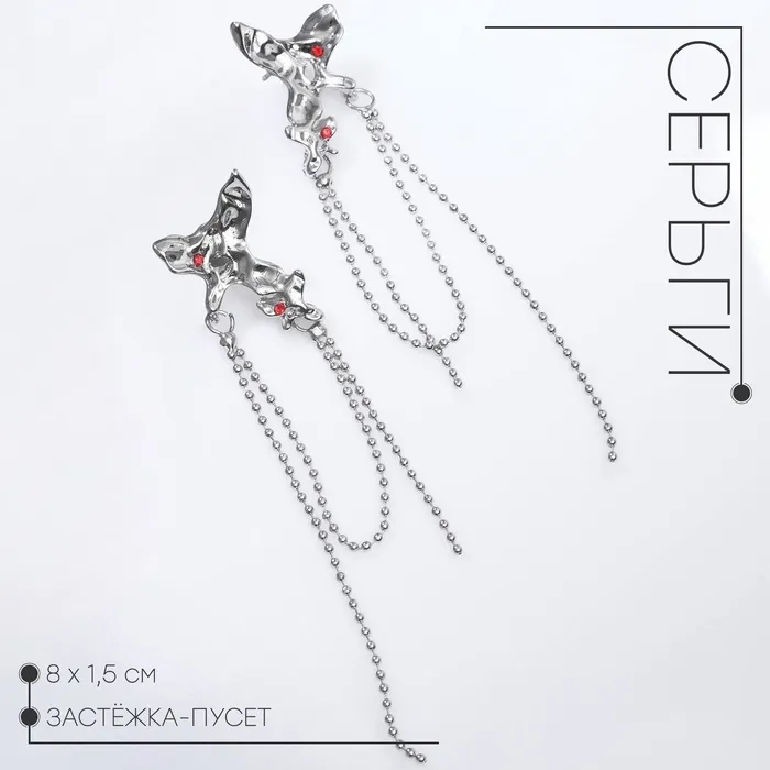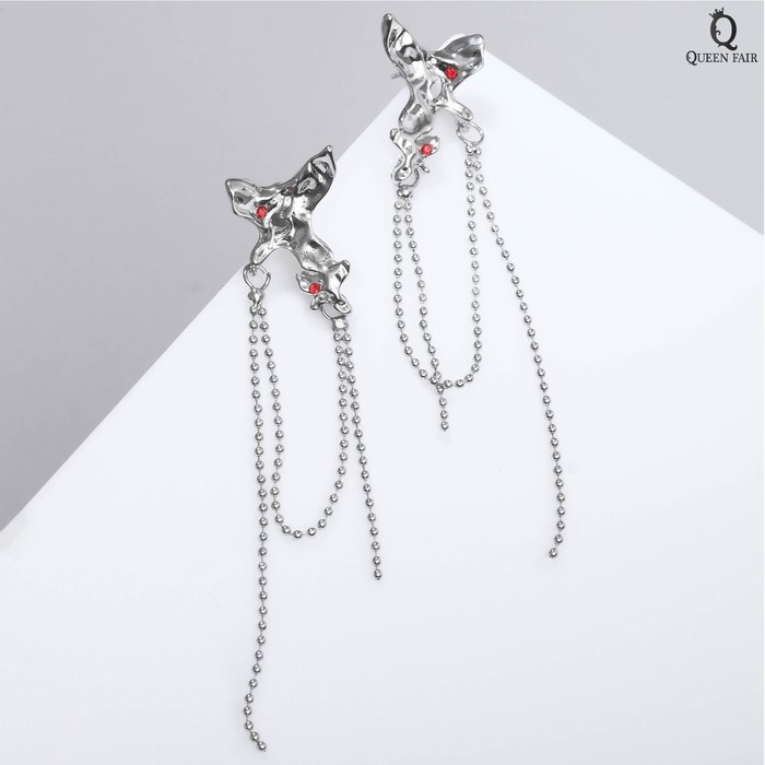 Серьги висячие со стразами «Жар-птица» с цепочкой, цвет красный в серебре, 8 см — Характеристики