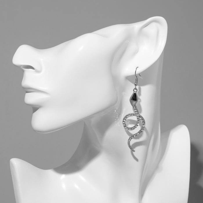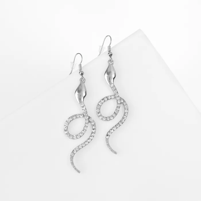 Серьги висячие со стразами «Змея» извивающаяся, цвет серебро — Характеристики