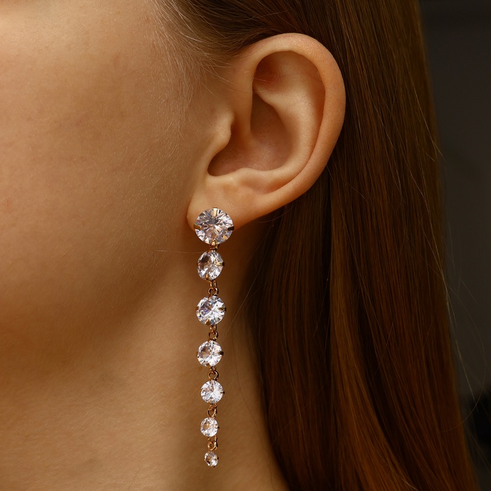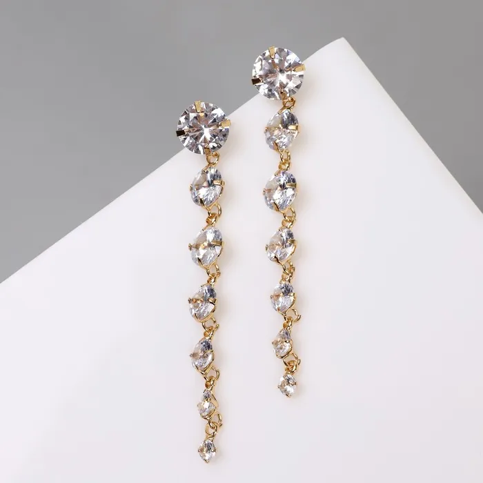 Серьги висячие со стразами «Змейка» L= 6,5, цвет белый в золоте, 6,5 см — Характеристики