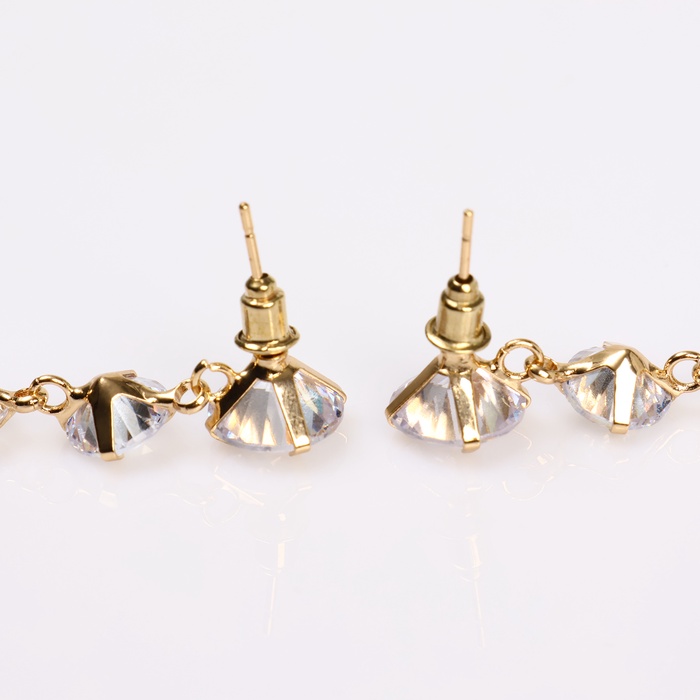 Металлическая основа из меди с золотым покрытием обеспечивает прочность и благородный блеск, а вставки из белых страз и стекла придают украшению сияние и глубину. Застёжка-пусет гарантирует надёжную фиксацию и комфорт при ношении, что особенно важно для повседневного использования и праздничных выходов.