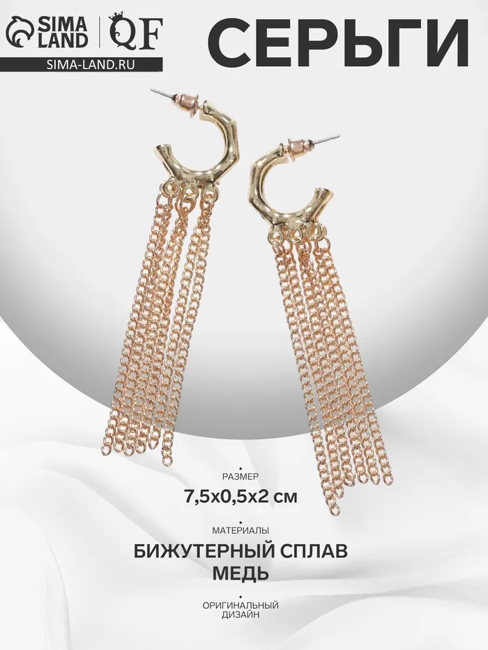 Серьги висячие «Стиль» тонкие цепочки, цвет золото — Характеристики