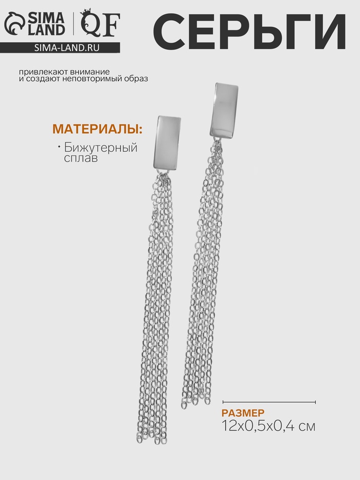 Серьги висячие «Стиль» цепочки, цвет серебро — Характеристики