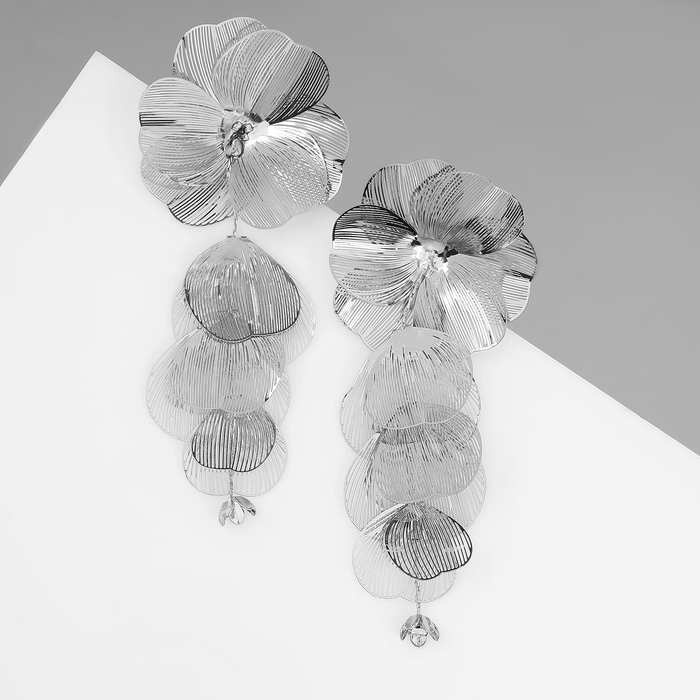 Серьги висячие «Цветок» каталея, цвет серебро– это стильный и изящный аксессуар, который придаст вашему образу особую нотку романтики и элегантности.