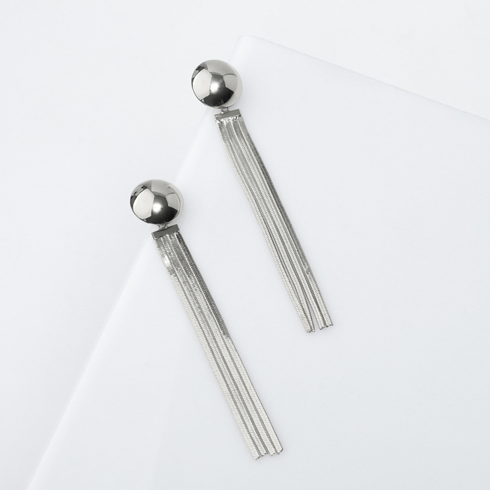 Серьги висячие «Водопад» 4 нити мини, цвет серебро