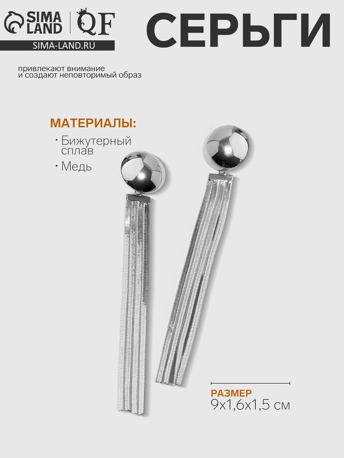 Серьги висячие «Водопад» 4 нити мини, цвет серебро — Характеристики