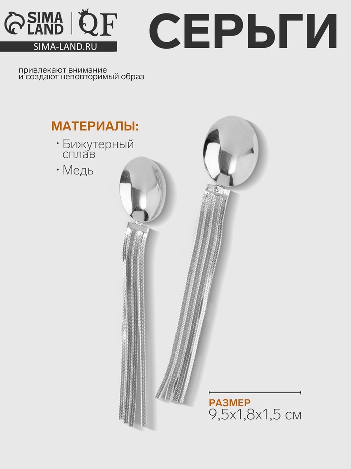 Серьги висячие «Водопад» 4 нити, цвет серебро — Характеристики