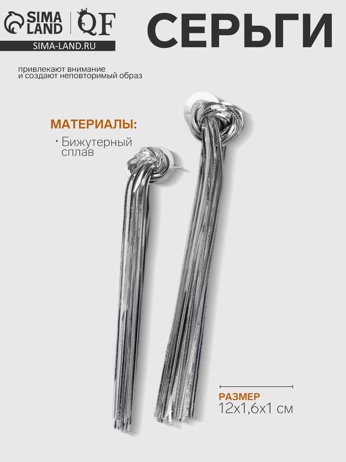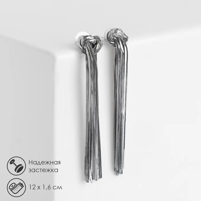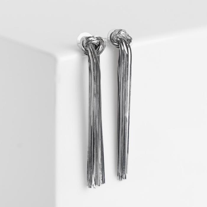 Серьги висячие «Водопад» узелок, цвет серебро, 12 см — Характеристики