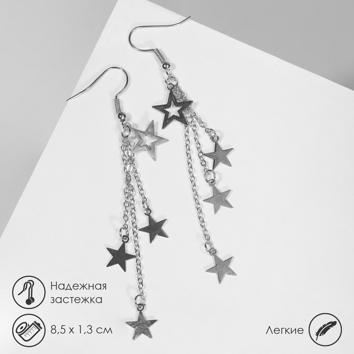 Серьги висячие «Звёздный дождь», цвет серебро — Характеристики
