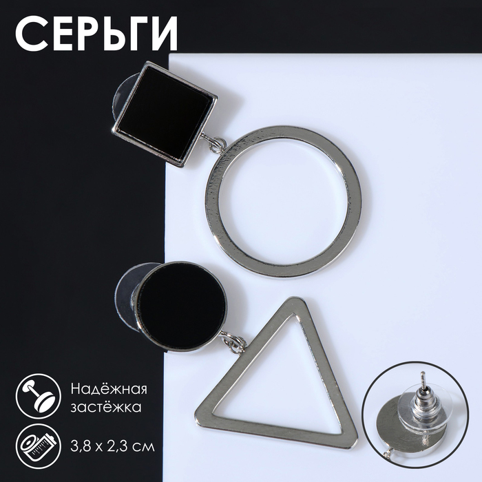 Серьги «Волшебство» геометрия, чёрные в серебре — Характеристики