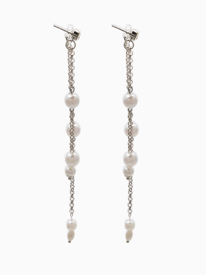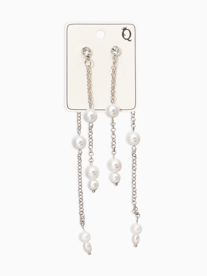 Серьги жемчуг "Цепочки" двойные, цвет белый в серебре