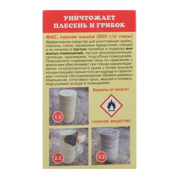 Серная шашка "Фас" профилактическая для дезинфекции погребов, подвалов, 300 г/16 таблеток — Характеристики
