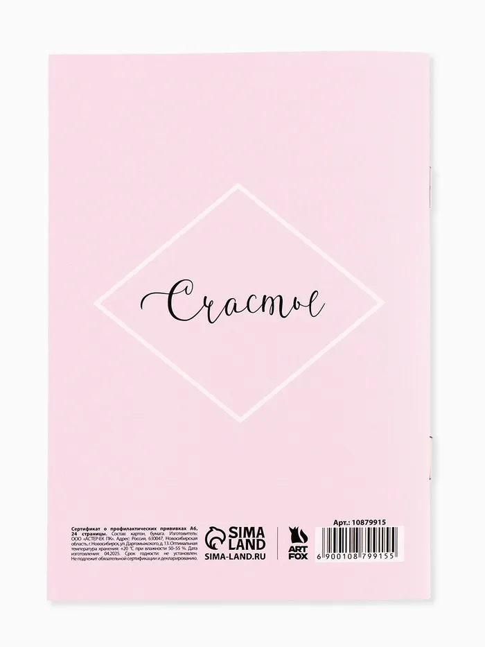 Сертификат о профилактических прививках А6, 24 страницы 10.5×14.8 см «Девочка» — Характеристики