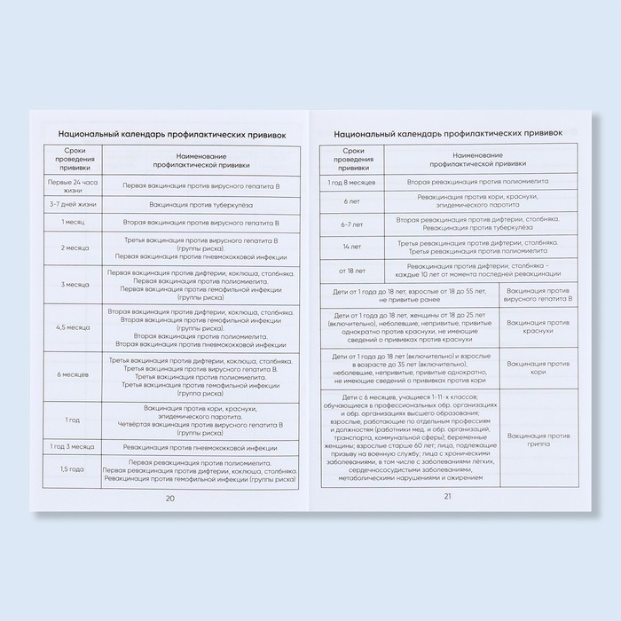 - национальный календарь прививок;
