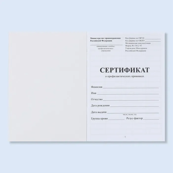 Сертификат о профилактических прививках А6, медицина, 24 страницы - необходимая вещь каждого человека! Прививочный сертификат подходит для поликлиники, детского сада, школы.