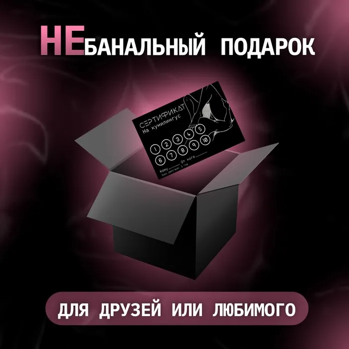 Набор состоит из Сертификата "На куни " и пяти съедобных лубрикантов.