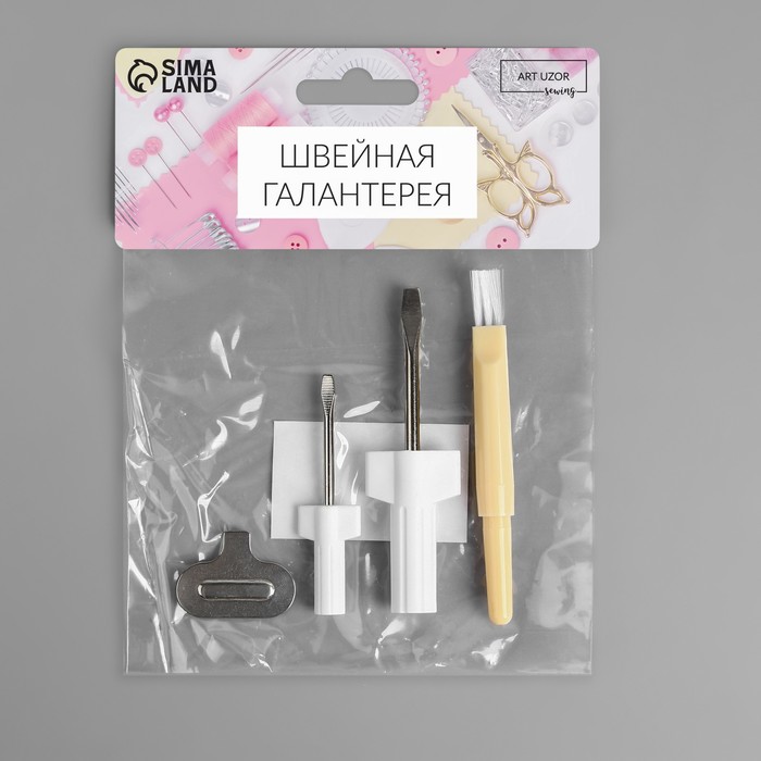 Сервисный набор для швейных машин позволяет устранять мелкие неисправности в домашних условиях. В набор входит 4 предмета: