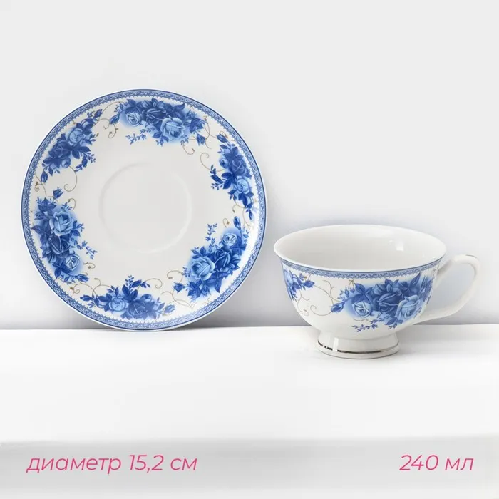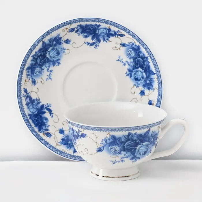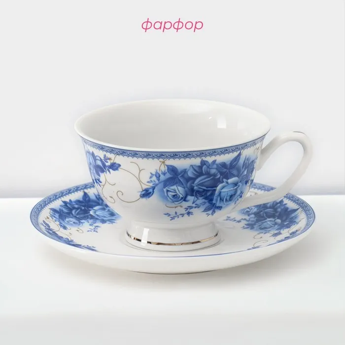 Чашка и блюдце изготовлены из качественного костяного фарфора и обладают неповторимым дизайном, а также насыщенным цветом. Такая посуда не только тоньше, но и заметно легче, чем аналогичные изделия из обычного фарфора.