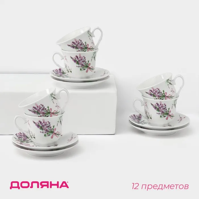 Сервиз чайный Доляна «Аззурро», 12 предметов: 6 чашек 240 мл, 6 блюдец d=15.2 см, фарфор, белый — Характеристики