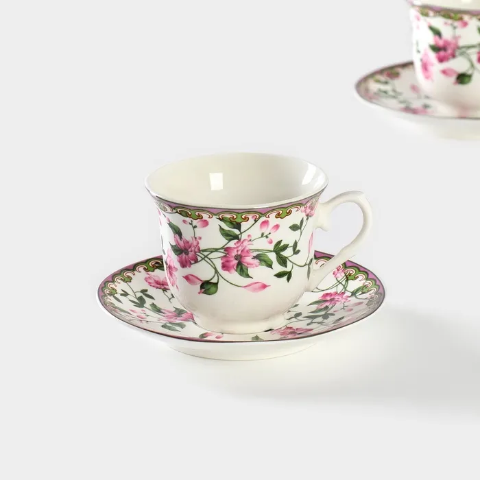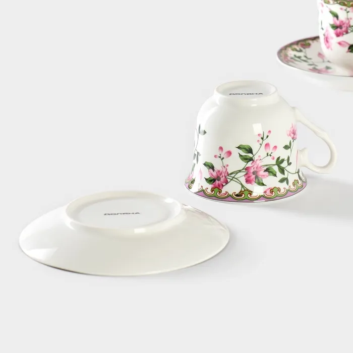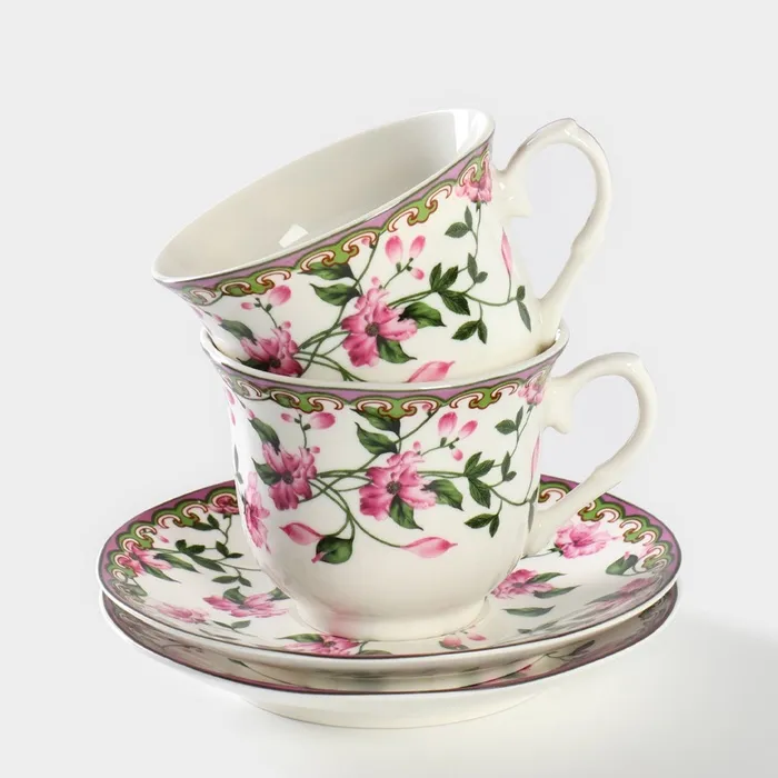 Сервиз чайный Доляна «Бланко», 4 предмета: 2 чашки 220 мл, 2 блюдца d=14.2 см, фарфор, белый — Характеристики