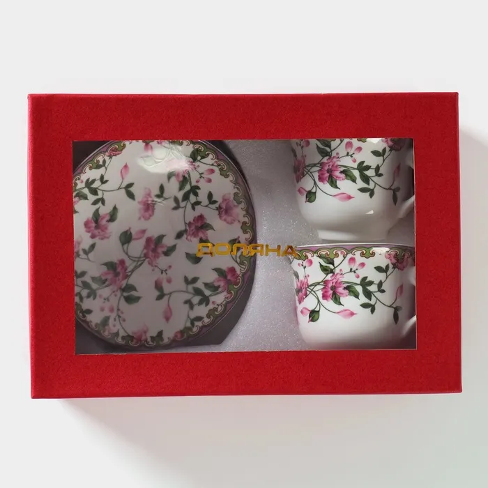 Чайный набор Доляна «Бланко» изготовлен из качественного костяного фарфора. Такая посуда не только тоньше, но и заметно легче, чем аналогичные изделия из обычного фарфора. Благодаря оригинальному дизайну, изделия легко украсят вашу кухню, а также прекрасно подойдут в качестве подарка. Чайный набор выполнен в приятных тонах с цветочным принтом, что позволит вписать его практически в любой интерьер.