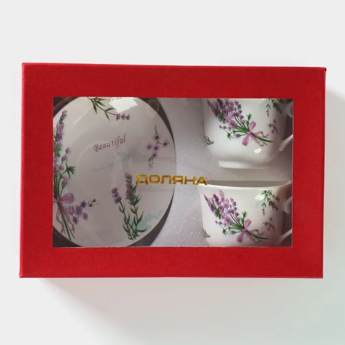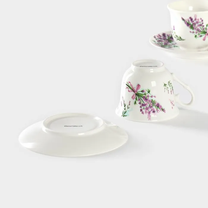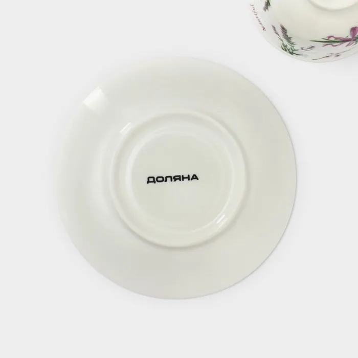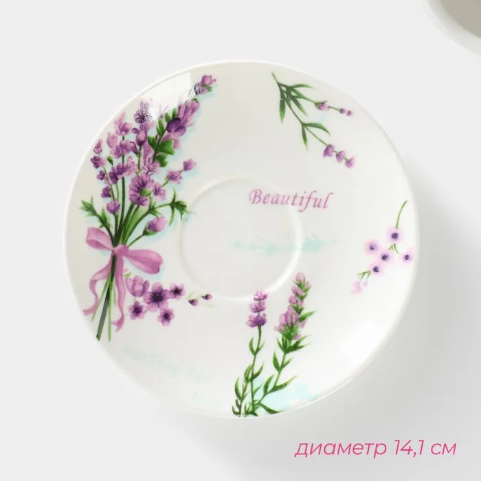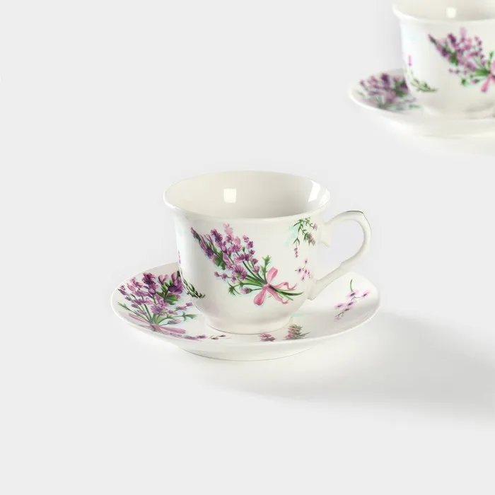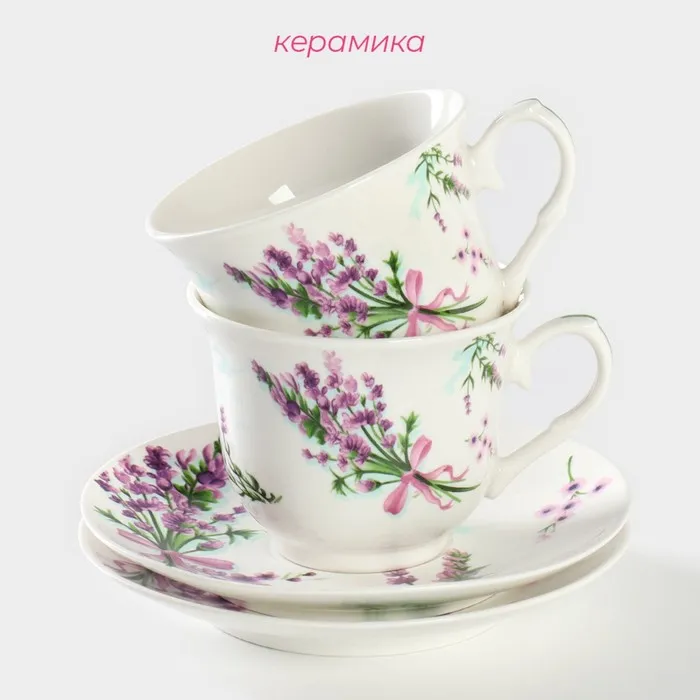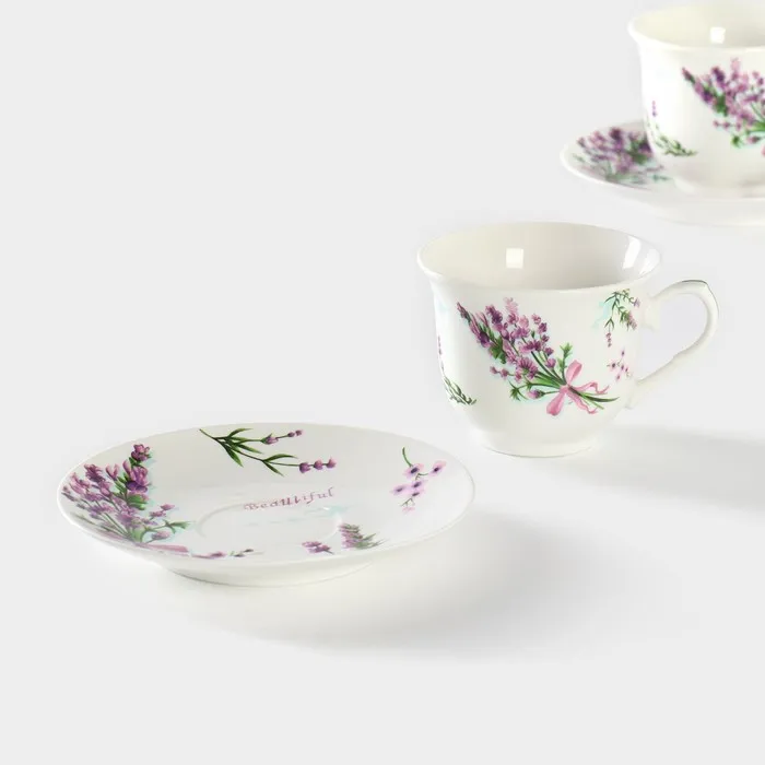 Сервиз чайный Доляна «Лаванда», 4 предмета: 2 чашки 220 мл, 2 блюдца d=14.2 см, фарфор, белый — Характеристики