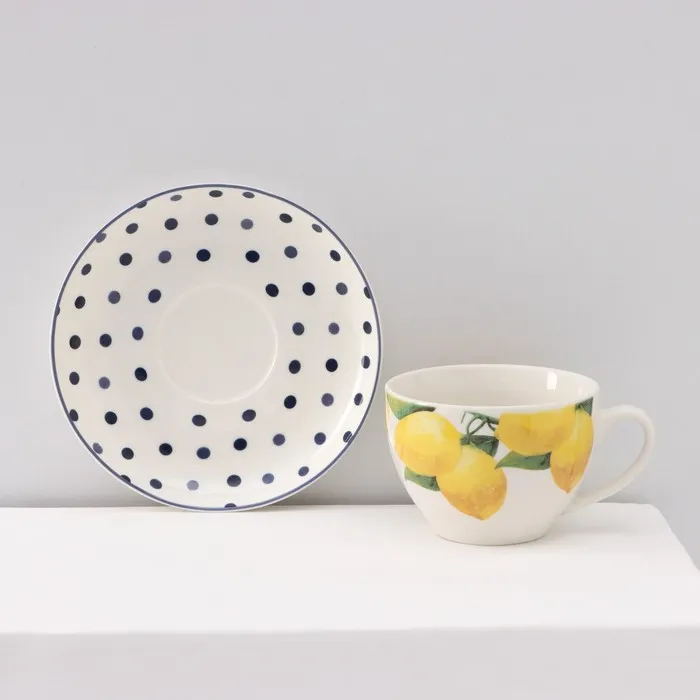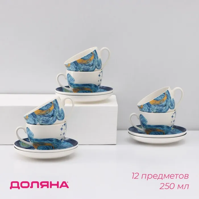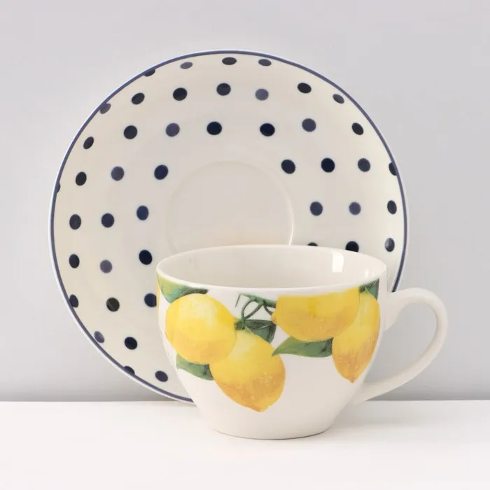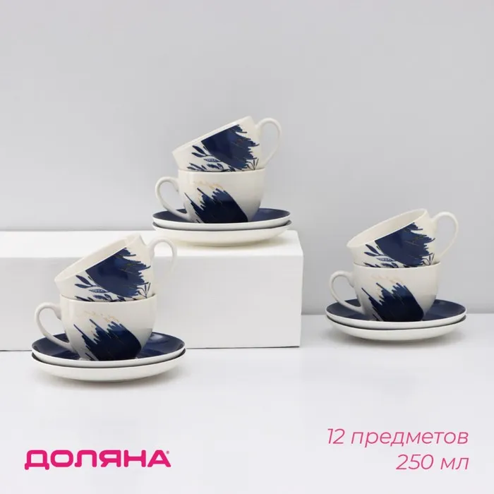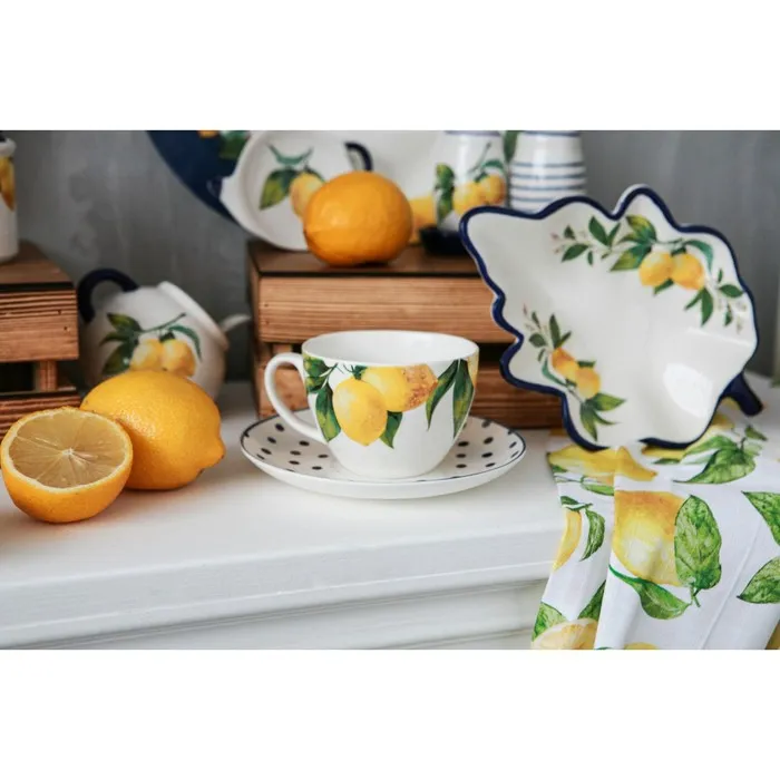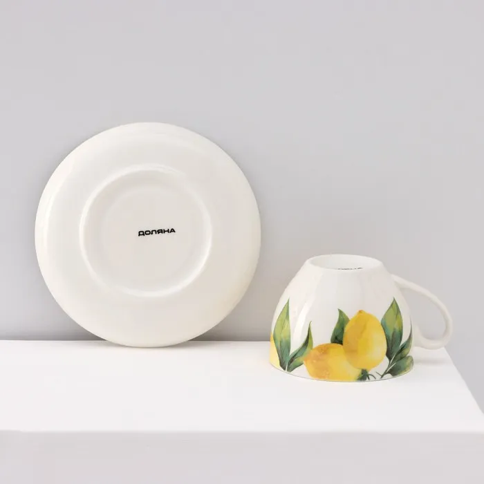 Сервиз чайный Доляна «Лимон», 12 предметов: 6 чашек 250 мл, 6 блюдец d=15,5 см, фарфор, цвет белый — Характеристики