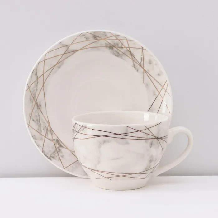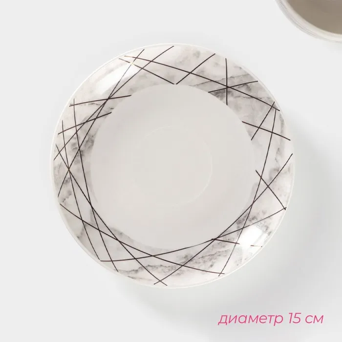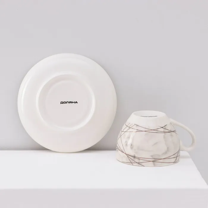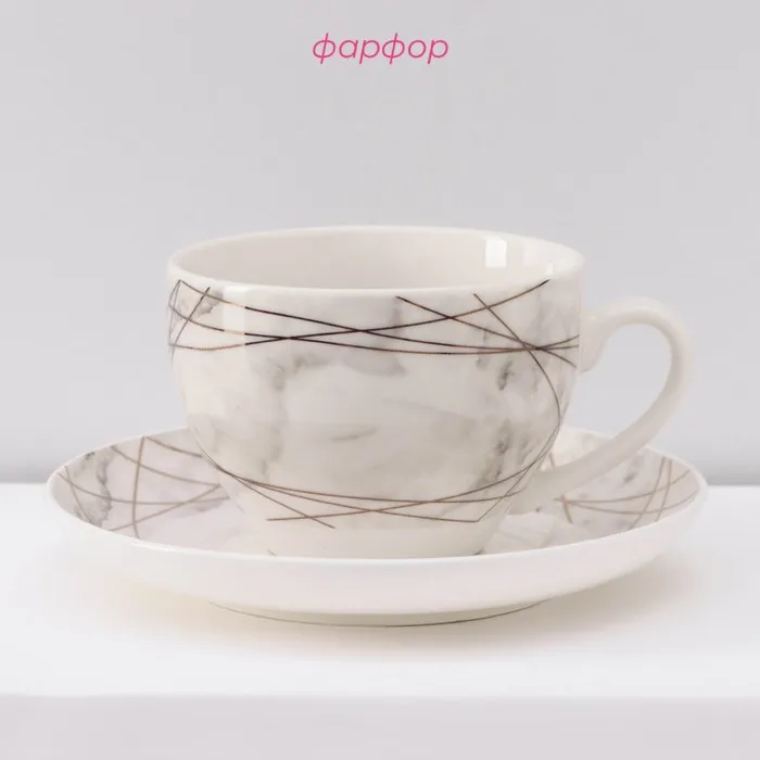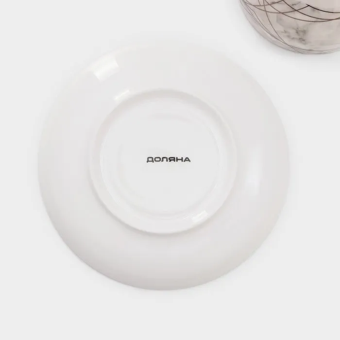 Сервиз чайный Доляна «Мрамор», 12 предметов: 6 чашек 280 мл, 6 блюдец d=15 см, фарфор, серый — Характеристики
