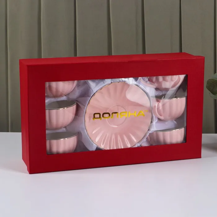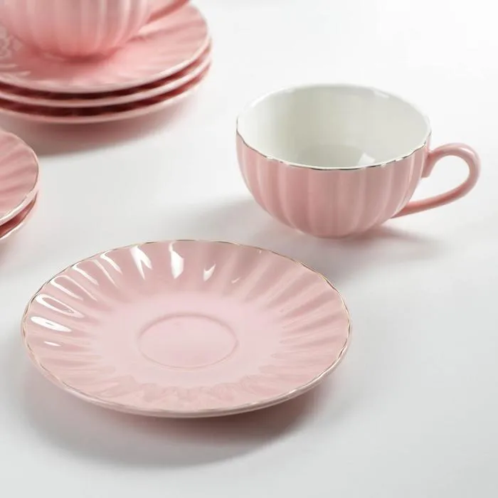 Сервиз чайный Доляна «Вивьен», 12 предметов: 6 чашек 200 мл, 6 блюдец d=15 см, фарфор, розовый — Характеристики