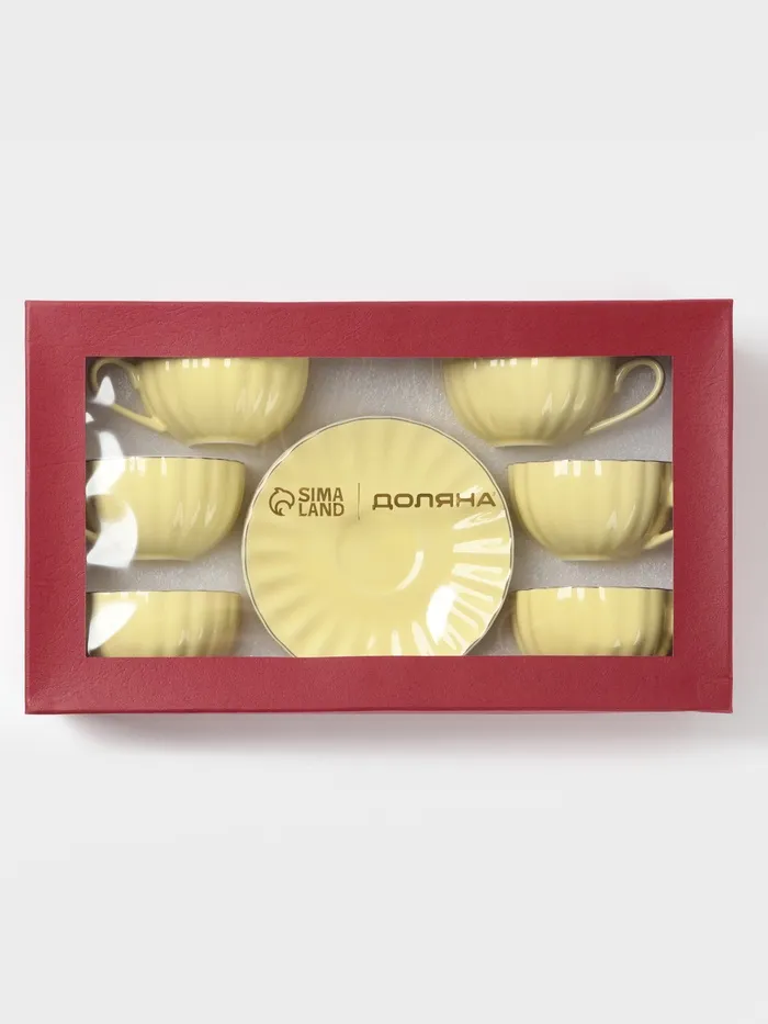 Сервиз чайный Доляна «Вивьен», 12 предметов: 6 чашек 200 мл, 6 блюдец d=15 см, фарфор, жёлтый — Характеристики