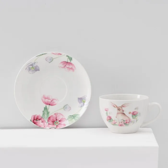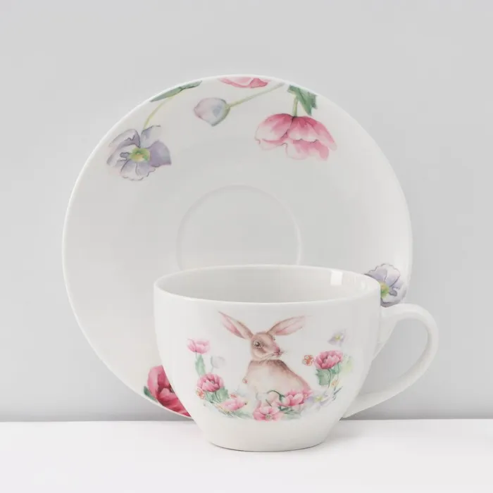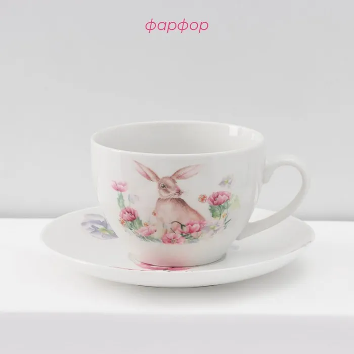 Сервиз чайный Доляна «Зайка», 12 предметов: 6 чашек 250 мл, 6 блюдец d=15 см, фарфор, белый — Характеристики