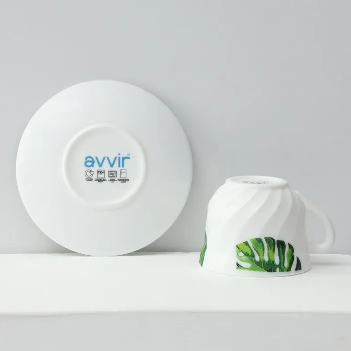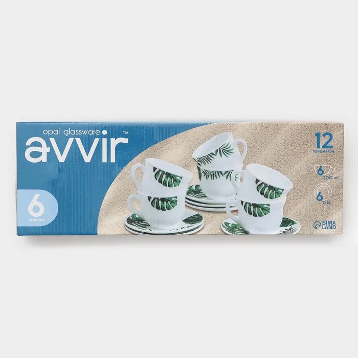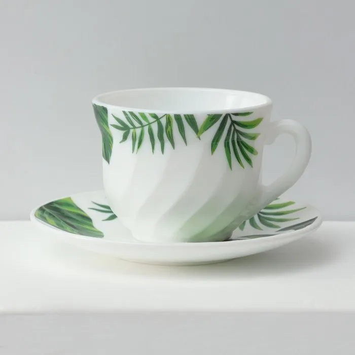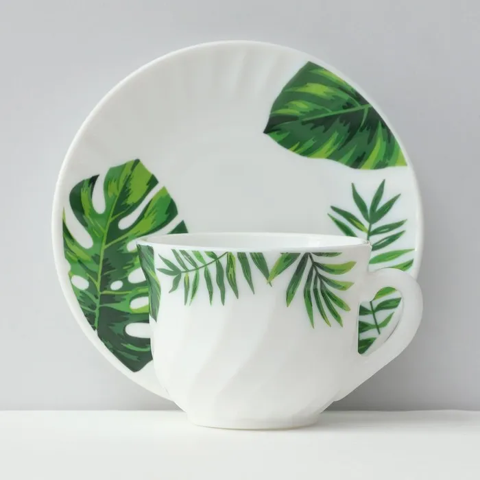 Сервиз чайный «Лист папоротника», 12 предметов: чашка 200 мл, блюдце d=14 см, стеклокерамика, белый — Характеристики