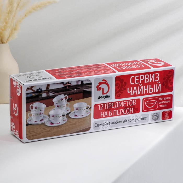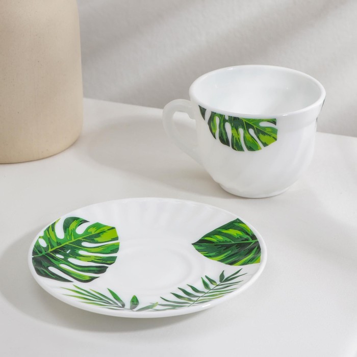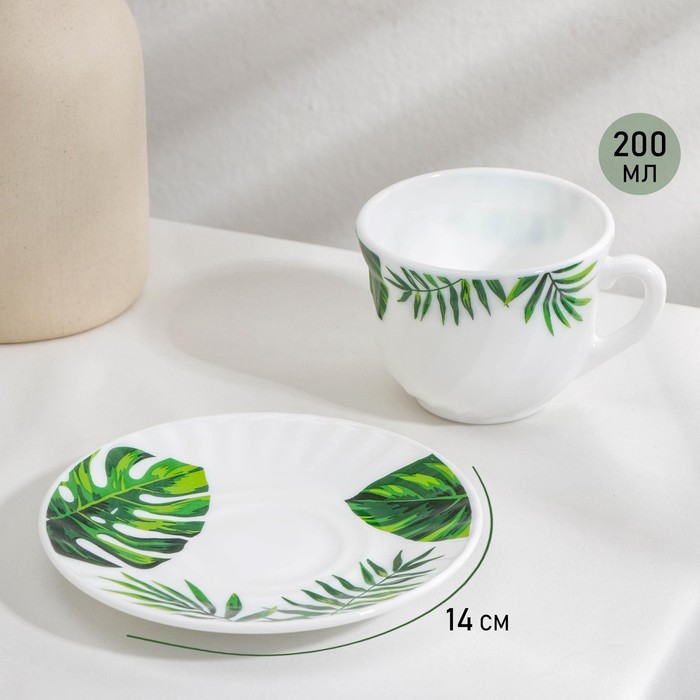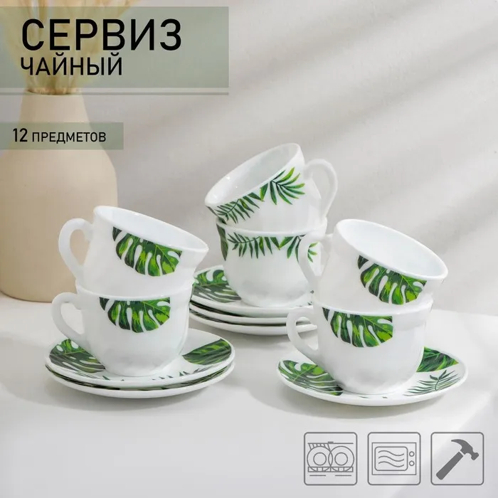 Сервиз чайный «Лист папоротника», 12 предметов: чашка 200 мл, блюдце d=14 см, стеклокерамика, цвет белый — Характеристики