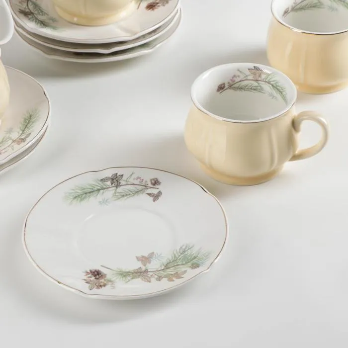 Сервиз чайный «Шишечки», 12 предметов: чашка 200 мл, блюдце d=14.5 см, керамика, жёлтый — Характеристики